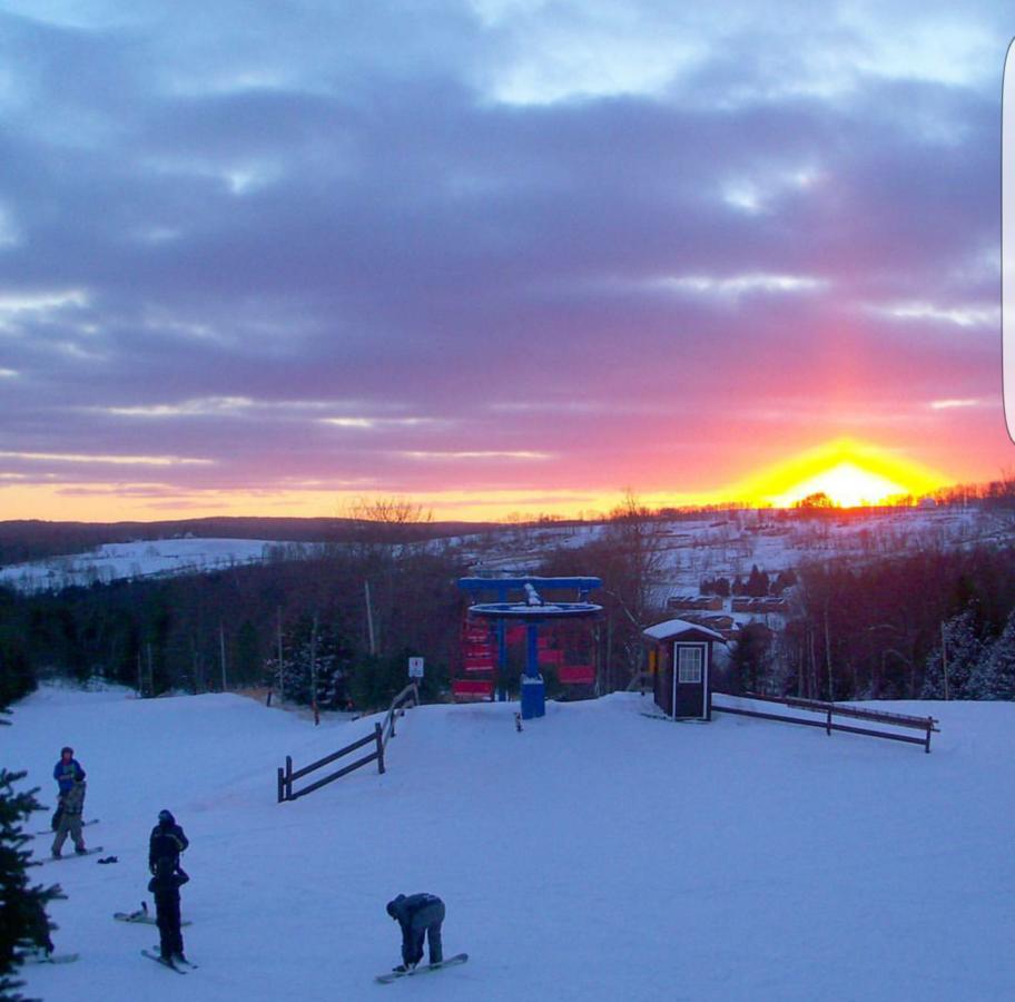 - Великолепная ухоженная территория в окружении гор и снег на лыжной горе.